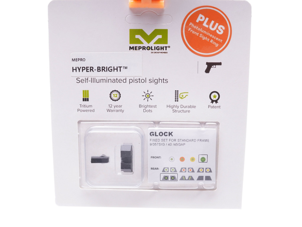 Meprolight Hyper Bright For Glock 9/357SIG/40/45GAP Fixed Set