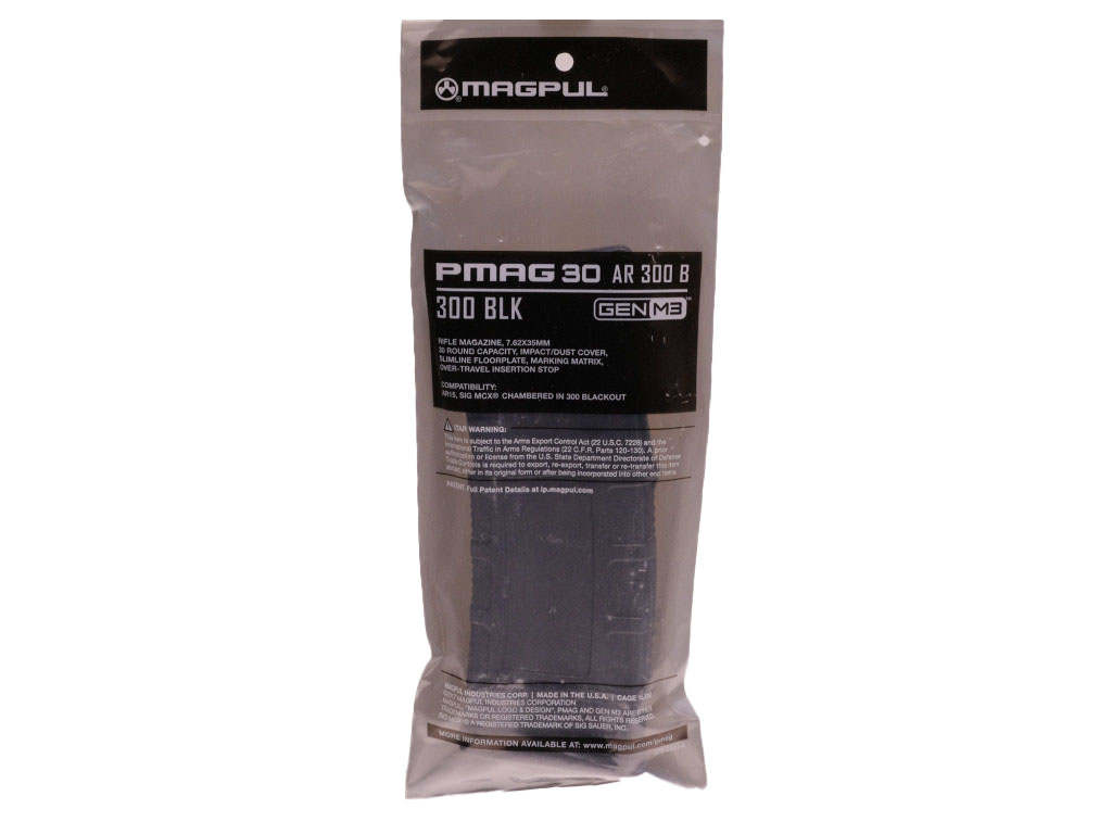 The PMAG 30 AR 300 B GEN M3 is a purpose-designed magazine for rifles chambered in 300 Blackout® (300 BLK). Since its inception, 300 BLK shooters have had to use a magazine designed for another cartridge, limiting its ultimate performance and compatibility. One of the key features of 300 BLK is the compatibility with 5.56x45mm parts, but with the magazine, it is a compromise to do so. Due to the wide variety of projectile weights and profiles potentially decreasing overall reliability, a dedicated 300 BLK magazine was a logical step for the PMAG line.