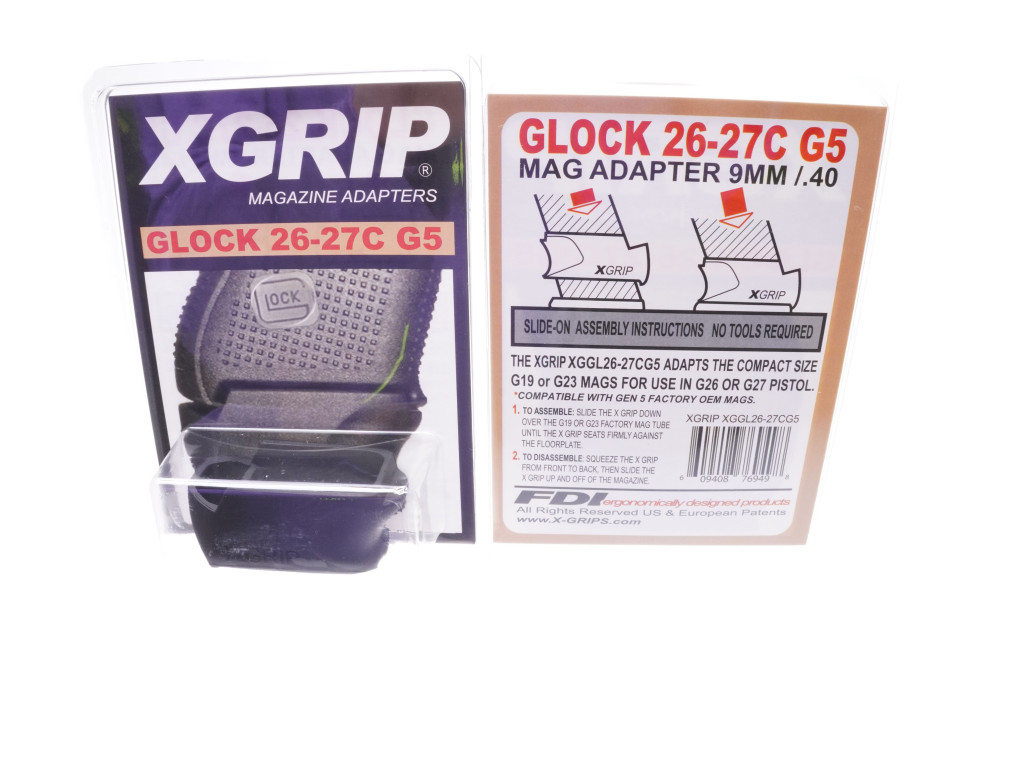 The newly patented XGGL26-27-G5 XGRIP adapts the G17, G22, or G31 hi capacity full size Gen 5 magazines for use in the Gen 3 Gen 4 and Gen 5 G26, G27, or G33 subcompact pistols, incorporating the larger magazine into the grip, and increasing the gun’s capacity. Law enforcement and military personnel can carry the Glock 26, 27 or 33 with a standard magazine when concealment is important, then insert the full size high capacity magazine with the XGRIP when maximum firepower and capacity become critical.